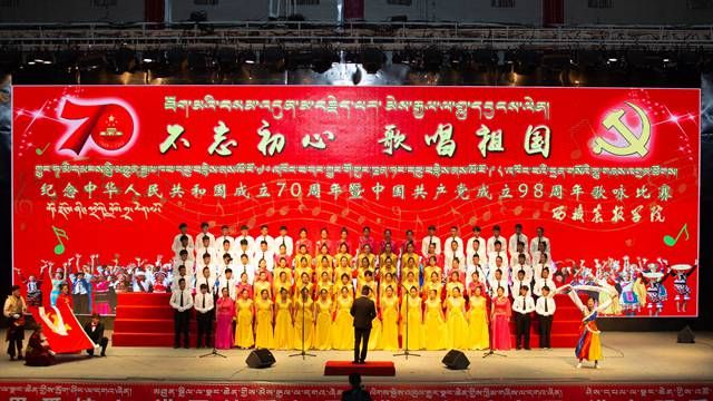 为庆祝中华人民共和国成立70周年暨中国共产党成立98周年,营造深入学习贯彻习近平新时代中国特色社会主义思想的浓厚氛围,推动“四讲四爱”群众教育实践向纵深发展。6月28日晚,西藏农牧学院在文体馆隆重举行“不忘初心 歌唱祖国”庆祝中华人民共和国成立70周年暨中国共产党成立98周年歌咏比赛,广大师生用歌声为党的98岁生日送上祝福,向祖国母亲70华诞献礼。