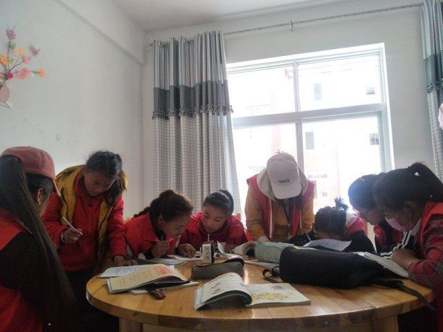 在儿童福利院,青年志愿者为孩子们认真辅导功课,仔细检查作业、耐心传授知识,教学严谨有序,他们用自己的言行举止为少年儿童树立好的榜样。