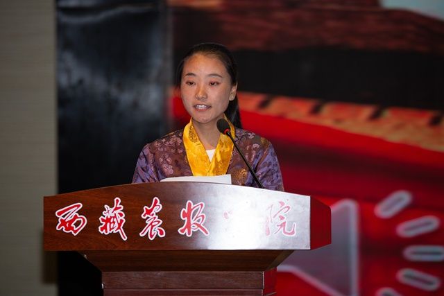 大会伊始,全体师生起立,奏唱国歌。首先工作人员宣读了《关于表彰2018年度共青团工作先进集体和先进个人的决定》。随后,主席台就坐院领导为我院获得西藏自治区五四表彰先进集体及个人、我院共青团工作先进集体及个人代表颁奖。接着,植科学院次仁央宗和资环学院白有志分别作为青年学生代表和青年教师代表做了发言。
