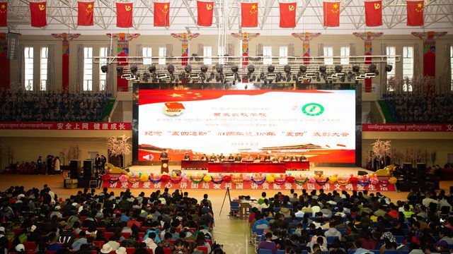在五四运动100周年之际,为进一步传承和弘扬五四精神,树立典型、表彰先进,鼓舞和激励广大团员、团干部勤奋学习、扎实工作,推动基层团组织各项工作更加扎实、全面、深入地开展,院团委于2019年5月4日18:00,在文体馆开展了纪念“五四”运动100周年暨2019年“五四”表彰大会。大会由院党委委员、副院长赵垦田主持,院党委副书记、院长高学,院党委副书记、副院长王春春,院党委委员、纪委书记边巴次仁以及党委宣传部、人事处、教务处、学工处、招就处、研究生处、院工会和各二级学院(部)主要领导同志出席大会,青年师生近2600人参会。