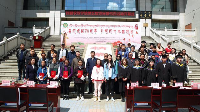 为迎接第24个世界读书日,引导学生多读书、读好书,营造书香校园,4月21日上午,西藏农牧学院图书馆、党委宣传部、团委、教育工会联合举办“喜迎建国70周年 引领阅读丰富校园”为主题的第五届世界读书日系列活动。院党委副书记、院长高学,院党委委员、副院长郭永刚,图书馆、党委宣传部、团委、教育工会及各二级学院有关领导参加活动开幕式。