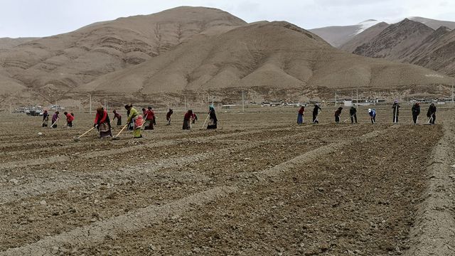 2019年3月,王建林一行到达距离县城约50公里(其中35公里为土路)、海拔4200m、气候寒冷多变、土壤多砾石、物资采购困难的隆子县热荣乡袄塘村,在热荣乡、袄塘村的协助下,项目组克服种种困难,严格按照2019年度项目实施方案的具体内容及要求,在近1个月的时间里,全面安排并完成200亩试验田的灌溉、播种等春播作业。