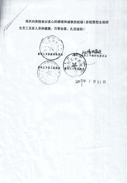 近日,墨竹工卡县政府、教育局、民政局及工卡镇村委会向西藏农牧学院发来感谢信,对学校培养优秀合格人才,大力支持贫困地区基础教育事业发展表示感谢。信中充分肯定了旦增坚才同学在小火苗支教团期间的积极行动和良好表现,对旦增坚才作为藏区大学生,热爱家乡、服务家乡,为家乡人民办好事办实事给予了高度认可和评价,并表示希望西藏农牧学院能够发挥自身优势,一如既往地支持地方教育事业,为基层地区提供人才和智力支持。