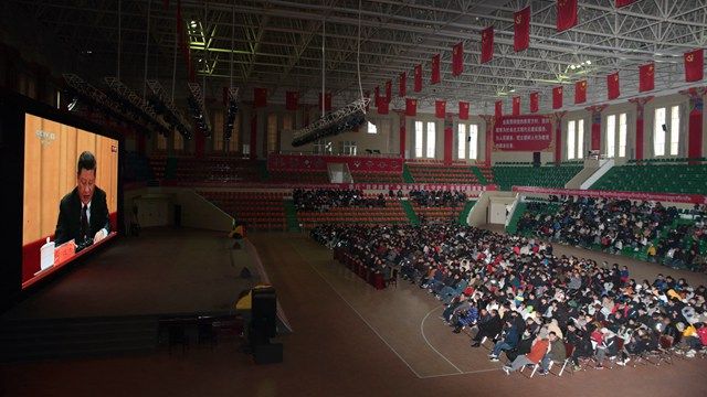 12月18日,庆祝改革开放40周年大会在北京隆重举行,西藏农牧学院无课师生二千八百余人在文体馆集体收看。