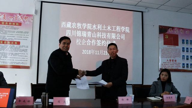 为深化教育思想大谈论活动内容,加强校企合作,提高人才培养质量,2018年11月23日下午,四川锦瑞青山有限公司与水利土木工程学院在学院会议室举行校企合作框架协议签字和揭牌仪式。水土学院党委书记达瓦、副院长李成林、副院长陆光华、副书记潘多、公司副总经理白锋、副总经理任富君、培训讲师方超、学院研究生秘书宋新伟以及相关老师参会。仪式由达瓦主持