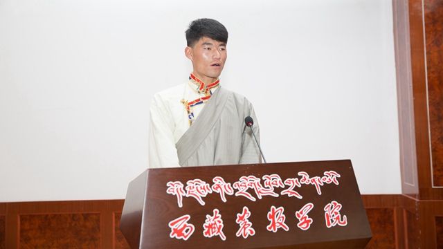 我院中华农科优秀学生奖学金2016年获奖学生代表杨金平和2018年获奖学生代表达瓦桑杰分别发表发言,他们说,中华农科优秀奖学金的设立,极大激励了他们学农爱农奋发向上的拼搏精神,他们将继续努力,刻苦学习,为献身农业,报效祖国作出自己的贡献。