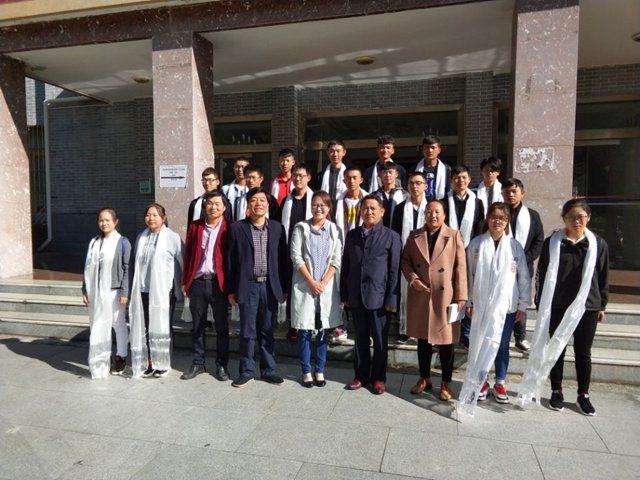 会议最后,与会领导向获选学生敬献了哈达,并合影留念。
