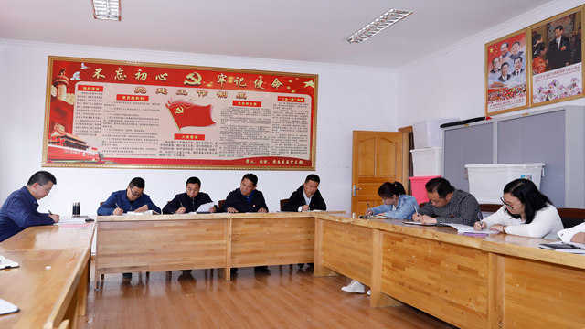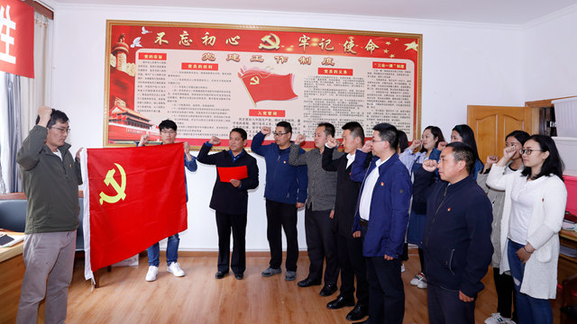 党员重温入党誓词 6月29日下午,在学生工作处会议室,在党支部书记米玛顿珠的领誓下,直属支部全体党员重温入党誓词,通过重温入党誓词活动,表达了党员们为共产主义事业奋斗终身、永葆党员先进性的坚定信念。