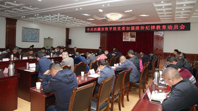 2018年7月17日上午,西藏农牧学院党委书记、副院长云丹加措主持召开学院党委加强政治纪律教育活动动员部署会。学院领导高学、郑维列、魏建荣及全院县处级领导干部参加。