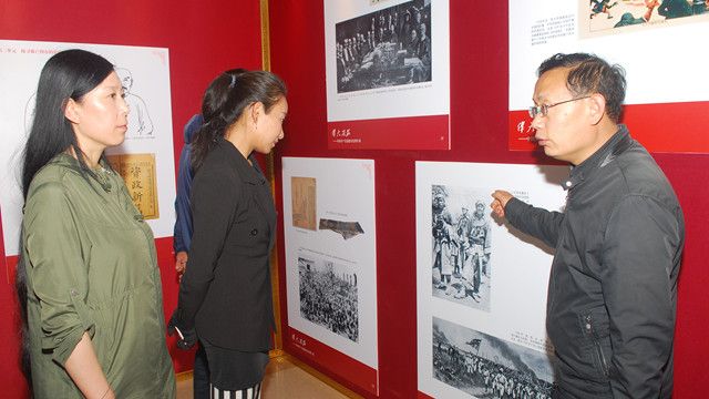 云丹加措、王春春带领党办(院办)直属党支部、纪宣工直属党支部党员参观党建历史图片展