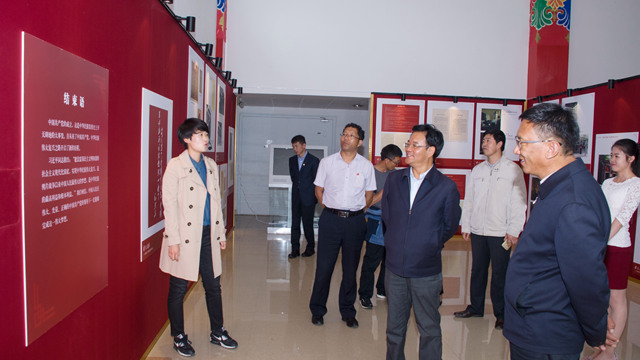 辩论赛结束后,与会领导一同参观了我院“伟大开端”中国共产党创建历史图片展