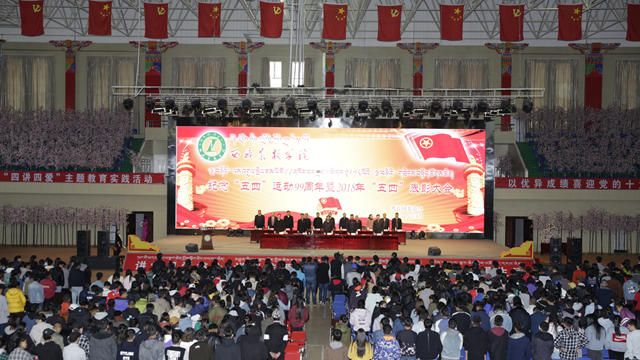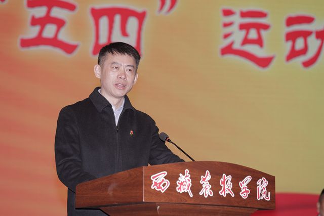 2018年5月4日下午15:30,我院在文体馆召开了纪念“五四”运动99周年暨2018年“五四”表彰大会。院党委书记、副院长云丹加措同志,院党委副书记、院长高学同志,院党委副书记、副院长王春春同志,院党委委员、副院长郭永刚同志,院党委委员、副院长魏建荣同志及党委办公室、组织部、宣传部、学工处、院团委、各二级学院负责同志出席大会,会议由魏建荣同志主持,全院青年师生近3000人参加了大会。