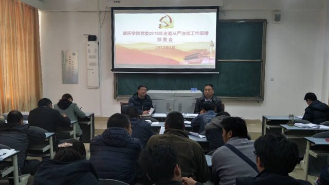 4月20日下午,资源与环境学院于三教3307教室召开2018年全面从严治党工作会议,深入学习贯彻习近平新时代中国特色社会主义思想和党的十九大精神,全面贯彻落实十九届中央纪委二次全会,自治区教育系统全面从严治党工作会议部署要求,分析研判学校全面从严治党形势,部署安排2018年全面从严治党工作的目标任务和工作要求。会议由资源与环境学院党委书记普穷主持,全体教职工参会。