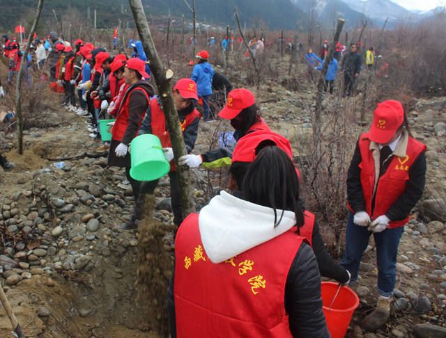为进一步贯彻落实党的十九大精神、贯彻落实习近平总书记关于“加强民族团结 建设美丽西藏”的重要指示和批示精神,紧紧围绕林芝市委关于创建民族团结示范市的部署要求,引导全市广大青年牢固树立“三个离不开”和“五个认同感”,积极营造加强民族团结、维护民族团结、珍视民族团结的浓厚氛围,3月17日上午,共青团林芝市委员会组织全市广大青年开展了第二届“造民族团结林 结民族团结情”建设民族团结青年林活动。西藏农牧学院青年志愿者协会40人协同林芝市西部计划志愿者、林芝青基会、林芝消防官兵等两百余人一起参加本次植树活动。