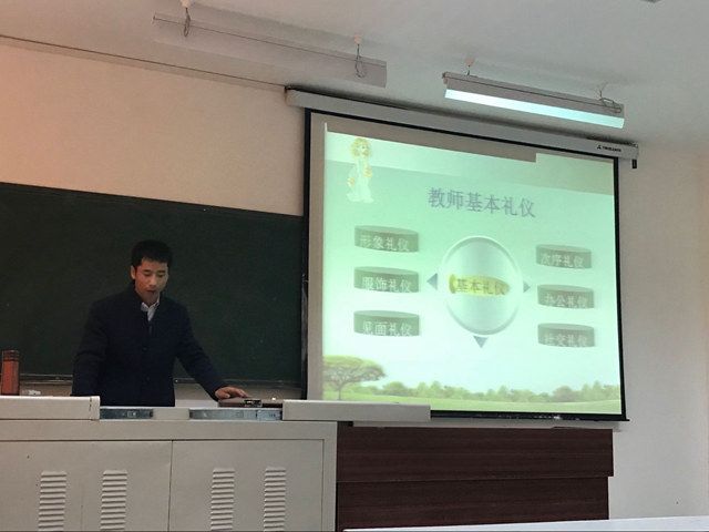 王忠斌老师对全体新进教职工进行文明礼仪培训。在培训课上王老师围绕教师的仪表、 仪容、语言和课堂礼仪等方面,讲述了文明礼仪对教师职业的重要性。王老师理论联系实际的授课方式和深入浅出、通俗易懂的讲解,使所有新进教师能够直观地了解教师礼仪知识及行为规范,教师们纷纷表示会为创建文明学校、提升教师形象做出自己应尽的努力。