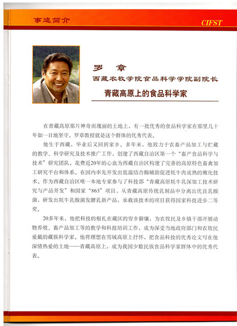 罗章教授从事畜产品加工30余年,专注于西藏特色畜产品资源的开发利用。先后主持国家自然基金在内的多项国家级省部级项目,成果显著。他常年穿行于青藏高原山区,以解决生产问题、培训农牧民和青年学生为己任,具有强烈社会责任感,是一位专业强、接地气的高原食品学专家,先后获得国家科技进步二等奖、西藏自治区科技进步三等奖等荣誉称号。