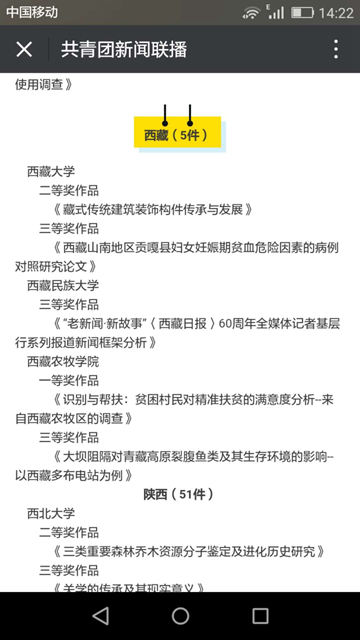 这些成绩的取得,离不开学校各级领导的关心和支持,离不开各位指导老师、评审小组专家和同学们的辛勤付出,离不开社会各界人士的支持,中国青年报对我院参赛前期准备工作也进行专题报道。本次比赛西藏高校代表队在历届“挑战杯”全国大赛中首次荣获一等奖,彰显了我院师生风采,为学校和自治区争得荣誉。在下一步的工作中,我院各级团学组织、广大青年学生将再接再厉、求真务实、奋发向上、开拓进取,积极培养创新意识和创新能力,不断取得新的辉煌。