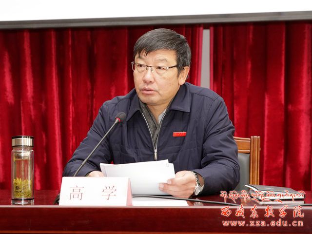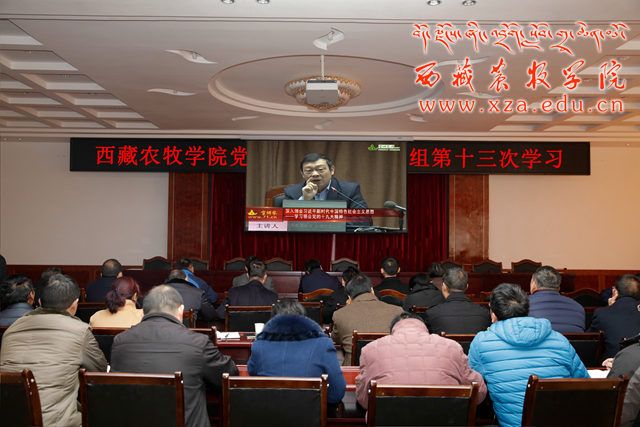 受云丹加措书记委托,高学代表学院党委就学习贯彻党的十九大及区党委九次三次全会精神进行了安排部署。一是突出党的十九大精神,切实掀起学习宣传贯彻的热潮。学习宣传贯彻党的十九大和区党委九届三次全会精神,是各级党政组织和广大师生当前和今后一个时期首要政治任务。要在前期工作的基础上,认真落实学校学习宣传实施方案,注重在学通、弄懂、做实上下功夫,始终感党恩、听党话、跟党走,努力工作、勤奋学习,办好党和人民满意的高等农业教育。二是始终讲政治,始终确保合格人才培养和校园安全和谐稳定。要切实加强党的政治建设,把维护习近平总书记党中央的核心、全党的核心作为最大的政治、作为最重要的政治纪律和政治规矩,坚定不移地推动习近平新时代中国特色社会主义思想武装师生头脑工作,加强和维护党中央集中统一领导,坚持全面从严治党,立足人才培养这个重点,把坚定理想信念作为党的思想建设的首要任务和思想政治教育的核心,在理想信念教育“三进”上下功夫,把理想信念教育做实,做出成效。三是始终抓发展,始终以学校发展的新成效服务社会主义现代化西藏建设。学习贯彻党的十九大和区党委九届三次全会精神,要坚持以人民为中心的发展思想,按照学院立足高原、面向西藏、服务“三农”的办学定位,认真实施学院综合改革若干意见、转型发展实施方案、一流学科建设方案,扎扎实实做好各项工作。各二级学院(部)、高原生态研究所要组织所属教职工,认真思考2018年工作,拓展工作思路,紧紧围绕乡村振兴战略、城乡区域协调发展、美丽西藏建设等方面,立足高原生态、高原农业两条主线,立足藏猪、高原油菜、种树等等方面的自身科技优势,各自找准一个着力点,明确工作重点,拿出明确意见和措施,进行集中发力、久久为功,同时推进资源有效整合共享,强化协同创新,打破学科间、院部间壁垒,形成全院一盘棋的发展格局。要认真贯彻落实总书记关于第二次青藏高原综合科考和那曲依靠科技种树的重要指示精神,进一步发挥团队优势,在第二次青藏高原综合科考和那曲依靠科技种树中做出实实在在的贡献。
