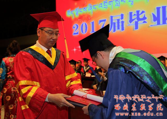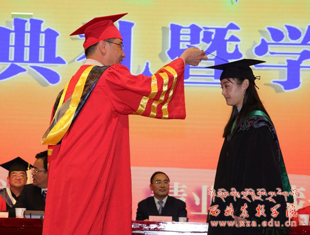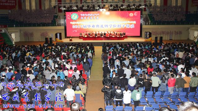 毕业是一首生动的离别歌,更是成长路上的里程碑,改变的是身份,不变的是情感。2017年6月7日下午,我院在文体馆隆重举行2017届毕业典礼暨学位授予仪式。院党委书记、副院长云丹加措,院党委副书记、院长高学,院党委副书记、副院长王春春,副院长郑维列,院党委委员、副院长赵垦田,院党委委员、副院长郭永刚,院党委委员、副院长翟新验,院长助理李卫星出席了典礼。各有关职能部门及二级学院、高原生态研究所负责同志,2017届全体毕业生及部分在校师生员工参加了典礼。毕业典礼由王春春主持。