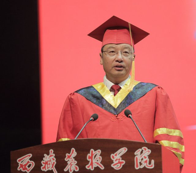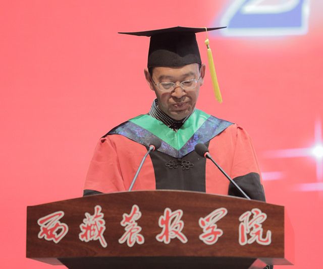 高学代表学校向圆满完成学业、即将踏上人生新征程的2017届硕士研究生、本专科毕业生以及获得表彰奖励的同学们,表示最热烈的祝贺,满怀深情地回顾了同学们美好难忘的大学生活,对同学们在校期间取得的成绩给予了充分肯定,并从继承弘扬学校“筹建精神”,讲党恩爱核心,讲团结爱祖国,始终心系祖国、服务人民;践行学校办学使命,讲贡献爱家园,始终立足高原、面向西藏、服务“三农”;全力发挥作用,讲文明爱生活,不断书写踏实而精彩的人生等方面,对广大毕业生同学提出了殷切希望和具体要求。他号召全体毕业生加强学习、坚持学习、不断创新,在实践中练就坚毅不拔的毅力,在“老西藏精神”、“两路精神”和农院“筹建精神”中培养吃苦耐劳的优良品质和家国情怀,希望全体毕业生继续关注母校、支持母校、宣传母校,常回母校看看。