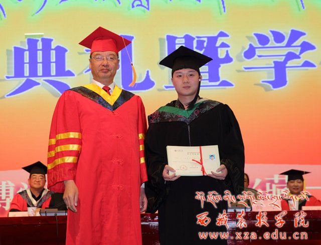 学院领导宣读了《西藏农牧学院关于准予2017届22名普通高等教育硕士研究生毕业的决定》、《西藏农牧学院关于授予2017届22名普通高等教育硕士研究生硕士学位的决定》、《西藏农牧学院关于准予2017届1388名普通高等教育本专科学生毕业结业的决定》、《西藏农牧学院关于授予2017届1060名普通高等教育本科毕业生学士学位的决定》、《西藏农牧学院关于公布2017届优秀硕士学位论文的决定》、《关于表彰奖励2017届考取博士研究生的硕士毕业生及所在硕士点和指导教师的决定》、《关于表彰2017届毕业生先进个人的决定》、《关于表彰2017届毕业生优秀学生奖学金 英语过级奖和校外奖获得者的决定》、《关于表彰2017届自愿申请赴艰苦边远地区工作毕业生的决定》,并为毕业生代表颁发毕业证书、授学位,为获得各项荣誉称号及各类表彰奖励的毕业生代表颁奖。毕业生代表、动物科学学院刘迎森同学,在校生代表、资源与环境学院措吉同学,教师代表、水利土木工程学院张存老师分别发言。