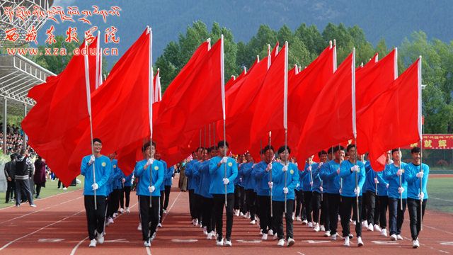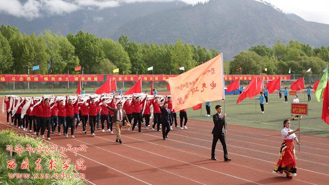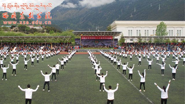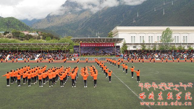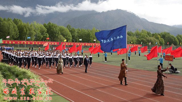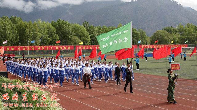 随后,刘涛同学、贡觉江村老师分别代表运动员、裁判员庄严宣誓。大学生艺术团、各二级学院的青年学生分别表演了《欢庆》《十里桃花》《青春赞赞赞》《雪域踢踏》《手牵手》《扎西德勒》《工布之歌》等精彩的文体节目,他们以大型舞蹈、藏式踢踏、健美操、藏式体操等形式,释放激情活力、展示青春风采,为运动会增添了浓烈的喜庆氛围。