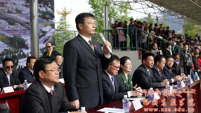 王春春代表学院对运动会顺利召开表示热烈祝贺,向运动会所有参与者表示衷心感谢。他指出,身心健康、体魄强健、意志坚定、充满活力,是一个民族生命力旺盛的体现,是社会文明进步的标志,是国家综合实力的重要方面。我们高校肩负着培养社会主义合格建设者和可靠接班人的重任,青年学生的体质与健康,事关国家和民族的未来。他激励广大学子不仅要在学习上勇于争先,更要在德智体美等更广泛的领域内实现突破,加强体育锻炼、强健体魄,努力培养自身健全的人格。他寄语全体运动员,要以高昂的斗志和顽强的精神文明参赛、公平竞争,赛出风格、赛出成绩;希望全体裁判员和工作人员恪尽职守,做到公平公正,维护赛场纪律,保证赛场安全,确保各项赛事顺利进行;要求广大师生积极参与,遵守规定、文明观赛、文明助威;并激励全院上下以此次运动会为契机,广泛开展体育运动,采用多种方式加强校园体育文化建设,促进我院形成珍视健康、热爱运动、积极向上的良好氛围,携手创建我们共同的精神家园,推动学院各项事业取得更大成绩,创造新的辉煌,为西藏长足发展和长治久安再立新功,以良好精神状态和优异工作成绩向党的十九大胜利召开献礼。