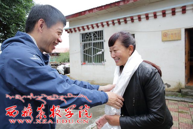 院党委书记、副院长云丹加措向娘龙村驻村工作队员敬献哈达