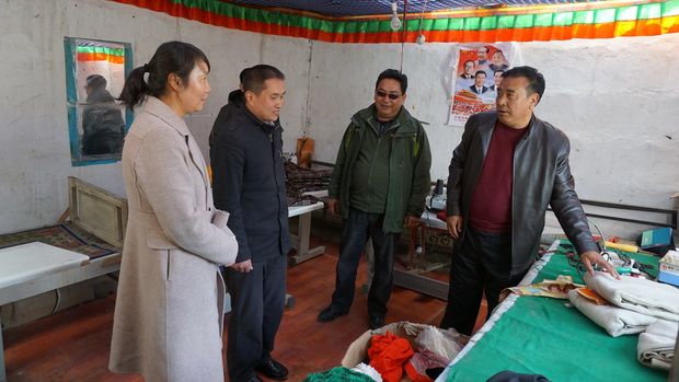 慰问期间,次旦平措一行参观了果拉村藏装加工点,了解其集体经济生产、运营情况。