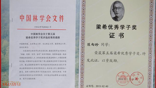 “梁希优秀学子奖”是经科技部批准,由中国林学会设立的专业奖励,主要奖励表现突出的林业院校在校优秀学生,旨在激励林业高校学生树立“献身、创新、求实、协作”的科学精神,促进林业科技后备人才的成长。梁希优秀学子奖每两年评选一次,今年共有来自全国27所林业高等院校和设有林学院的农业大学、综合性大学的43名学生获此殊荣。