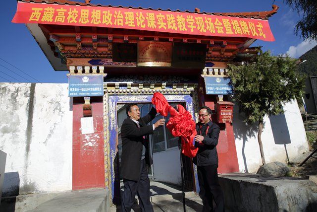 仪式上,娄源冰与次旦平措共同为西藏高校大学生社会实践教学基地揭牌,这也是我区首个高校思想政治理论课实践教学基地。