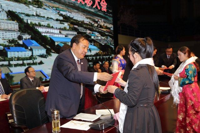 次旦平措代表学院党委、行政和广大师生员工,向全体新同学表示热烈欢迎,向获得表彰奖励的先进集体和个人表示热烈祝贺。在简要介绍学院办学历程、校风校训及西藏未来发展的美好前景后,次旦平措围绕学习贯彻中央第六次西藏工作座谈会精神,从“坚定理想信念,把握人生方向;坚定政治立场,履行守土职责;坚持深度学习,增长知识才干;坚持锤炼品格,实现全面发展”四个方面,对广大学生特别是2015级新同学提出了殷切希望和要求。他希望广大教师和教育工作者牢记责任与使命,坚持贯彻落实党的治藏方略和西藏工作战略部署,坚持“四有好老师”标准,努力做教育改革的奋进者,做学生成长的引导者,做业务精湛、学生喜爱的高水平教师,共同营造全员育人、全方位育人、全过程育人的良好氛围。