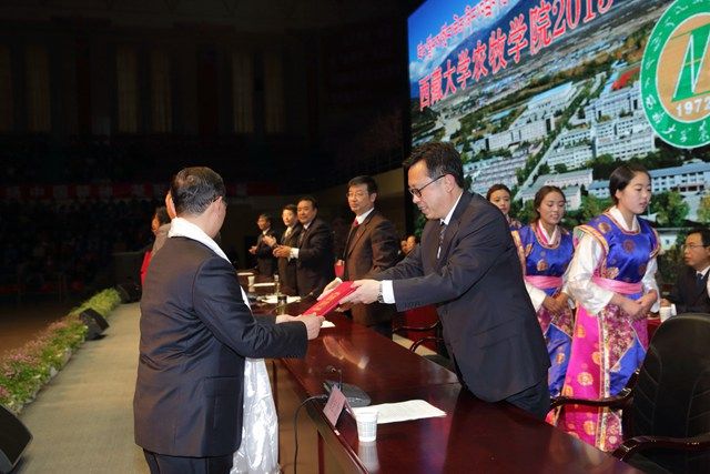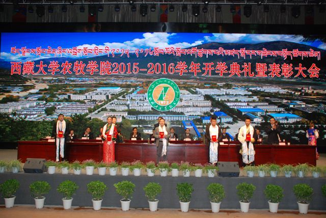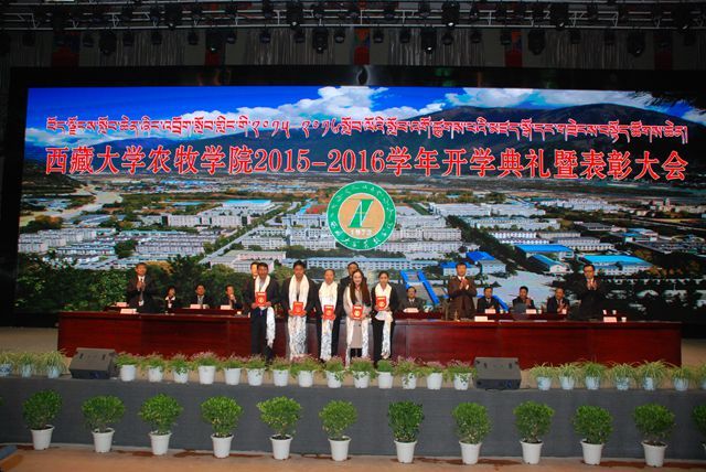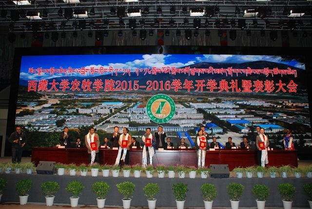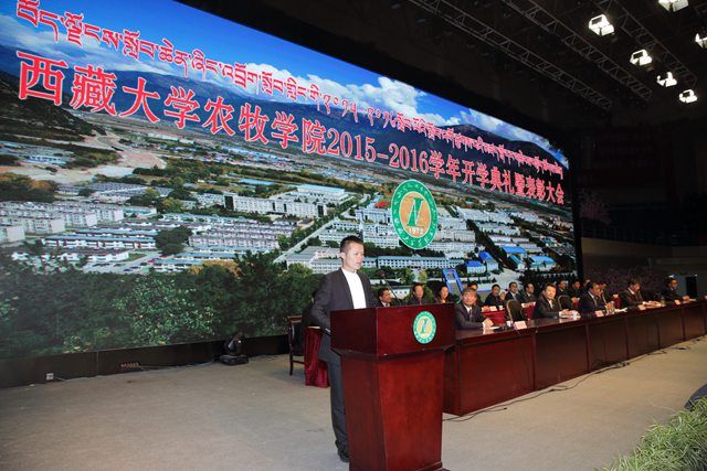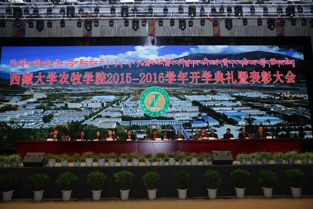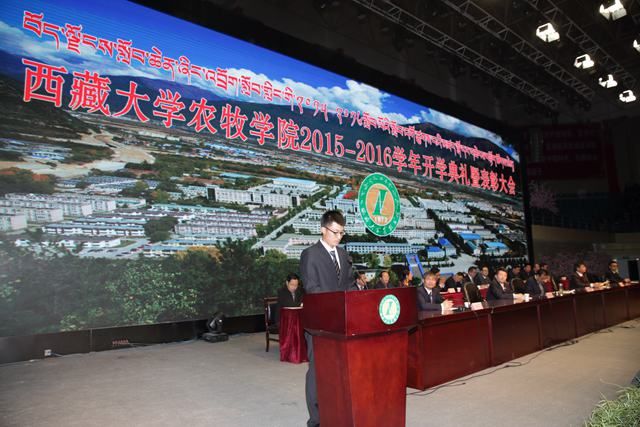 2015年9月18日下午,我院2015—2016学年开学典礼暨表彰大会在文体馆举行。院党委副书记、院长次旦平措出席典礼并讲话。院党委副书记、副院长高学主持。学院领导郑维列、周宏力、周顺利,各教学单位及相关部门主要负责同志,全体新生及部分师生代表近3500人参加典礼。