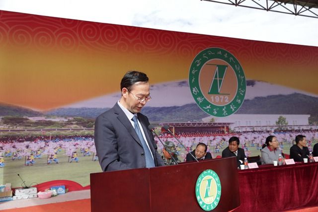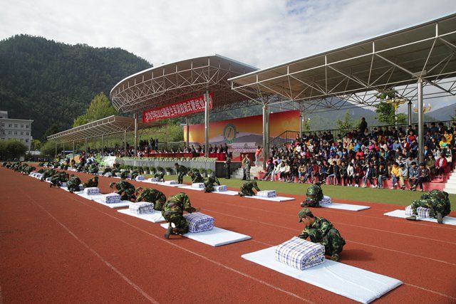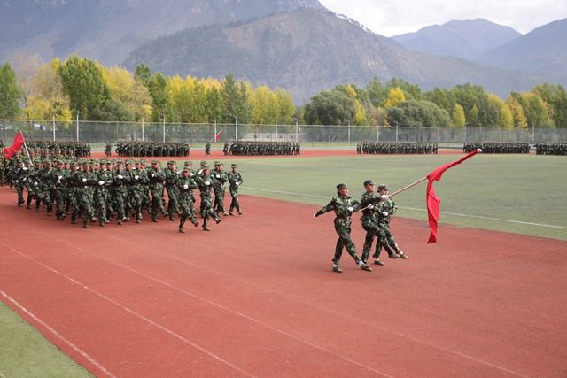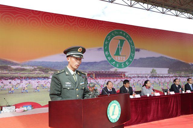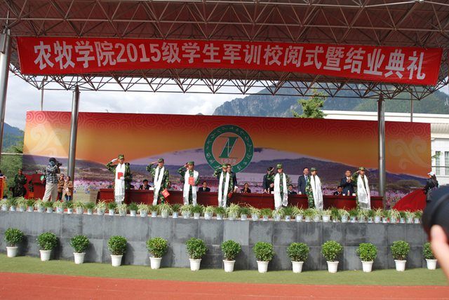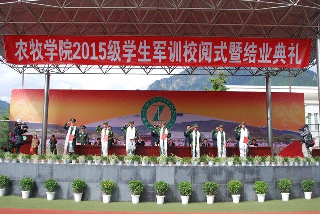 9月29日上午,我院隆重举行2015级学生军训校阅式暨结业典礼。院党委副书记、院长次旦平措,林芝军分区副参谋长连整静,院党委委员、副院长赵垦田、琼日、周顺利,林芝军分区军务动员科参谋苏平、军训营营长洪吉华,学院相关单位领导及1700余名新生参加了军训校阅式暨结业典礼。典礼由院党委副书记、副院长高学主持。