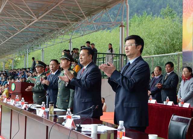 林芝军分区副参谋长连整静代表林芝军分区讲话