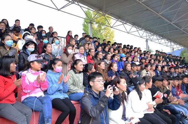 校阅式暨结业典礼在激昂雄壮的《检阅进行曲》中拉开帷幕,院党委副书记、院长次旦平措与林芝军分区领导共同检阅了军训队伍。一时间,“同学们好、首长好!同学们辛苦了、为人民服务!”的口号声此起彼伏,回响在整个操场上空。