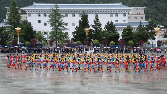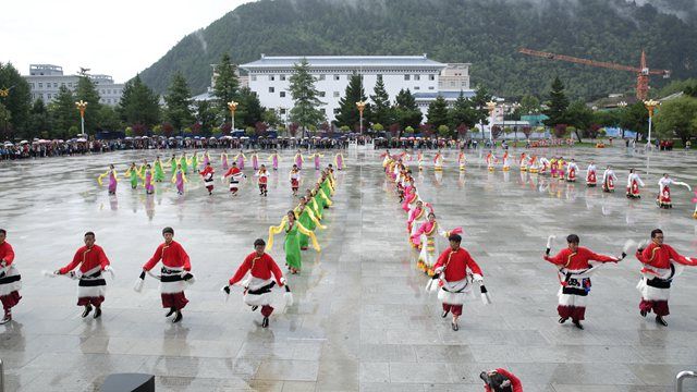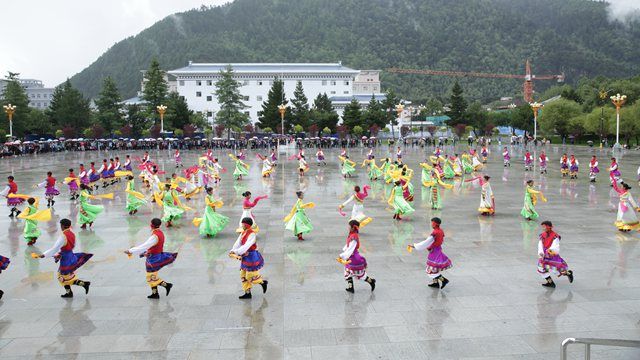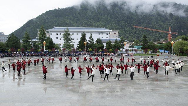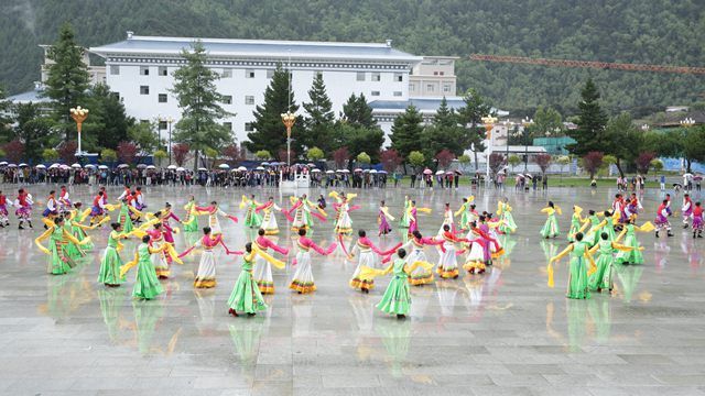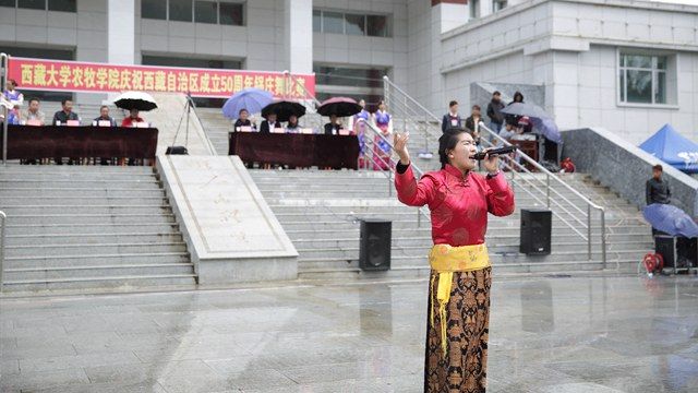 活动现场,虽然天公不作美,细雨霏霏,但丝毫没有影响参赛队员们的如火热情。伴着大气典雅、浑厚豪迈的音乐,来自各二级学院的六支参赛队伍激情四射、纵情欢舞,分别表演了我区各地市具有不同特色和民族韵味的锅庄舞蹈,充分展现了西藏各族儿女在祖国大家庭中的幸福生活,表达了青年学子对中国共产党、中国特色社会主义的热情讴歌和赞颂。比赛过程中,参赛队员们身着鲜艳的民族服饰,步伐矫健、动作挺拔;舞姿舒展洒脱、优美飘逸;队形变换更是令人目不暇接,时而变换成大小不同的圆圈,时而变换成“50”的字样,时而变换成美丽的花朵,精彩的表演赢得了现场观众阵阵热烈的掌声和欢呼声。