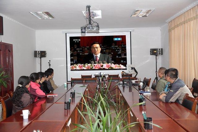 当天上午,我院党政领导、县处级干部在学生食堂,与无课的师生和2015级已报到的新生集中收看电视实况直播。教职员工分别在各办公场所、教师公寓,通过电视、广播、网络等收听收看大会盛况。之后,各单位及时组织师生围绕中共中央政治局常委、全国政协主席、中央代表团团长俞正声在西藏自治区成立50周年大会上的讲话,中共中央政治局委员、国务院副总理、中央代表团副团长刘延东宣读的中共中央、全国人大常委会、国务院、全国政协、中央军委贺电和自治区党委书记陈全国的讲话精神,进行了认真学习讨论,大家谈感想、话心得、讲体会、说认识,共同畅说西藏自治区成立50年来翻天覆地的巨大变化,共同感受以习近平为总书记的党中央对西藏人民的亲切关怀,共同祝福西藏自治区繁荣昌盛。