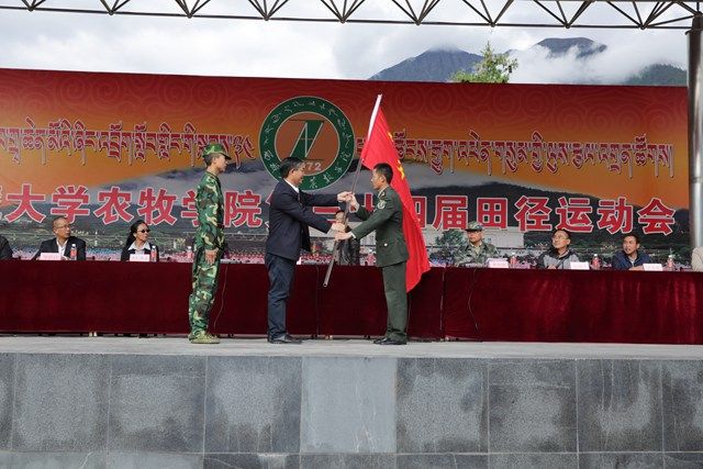 会议宣读了《西藏大学农牧学院学生军训守则》,教官代表达瓦次仁、新生代表杨金平作了发言。并举行了授旗仪式,标志着军训营正式成立。军训营下设5个连、19个排、43个班,军训教官27人,配备班长(我院军警生)60余人。