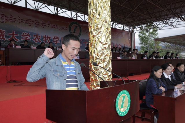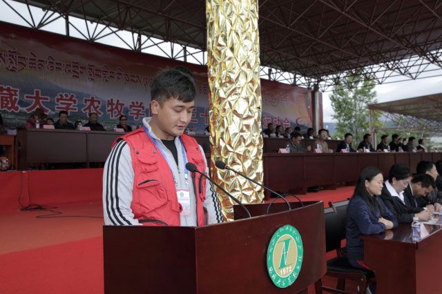 入场式结束后,举行了庄严的升国旗唱国歌仪式。随后,院党委委员、副院长、第三十三届田径运动会组委会副主任赵垦田致开幕辞,王二虎同学、贡觉江村老师分别代表运动员、裁判员庄严宣誓。次旦平措宣布运动会开幕。