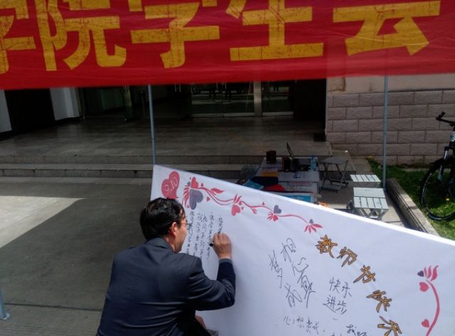 认真开展学习宣传活动。一是通过校园网络、校报、校内刊物、宣传栏、黑板报等媒体平台,大力宣传自治区教师工作会议上我院受到表彰的各类先进典型、先进事迹,宣传我院改革发展稳定工作成绩,宣传各级党委、政府对教师的高度重视和亲切关怀,增强广大教师的职业荣誉感和责任感,激励广大教师爱岗敬业、教书育人。二是组织教职员工认真学习《教育部关于进一步加强师德建设的意见》和《高校教师职业道德规范》等,引导广大教职工进一步牢固树立正确的职业理想,牢固树立“育人为本”的理念,以独特的人格魅力、精湛的学识水平和卓有成效的工作教育感染学生,努力做学生健康成长的指导者和引路人。三是9月9日习近平总书记在北京师范大学考察时号召全国广大教师做党和人民满意的好老师,我院及时将总书记重要讲话发布在校园网上,组织广大教师和教育工作者认真学习,并安排制作牌匾,将总书记提出的“好教师”标准悬挂于各二级学院(部)、教务处等部门,随时引导广大教师自觉做党和人民满意的好教师。四是我院及有关部门结合实际,组织开展了“我最喜爱的大学老师”评选及征文活动。