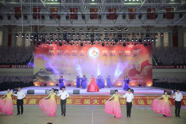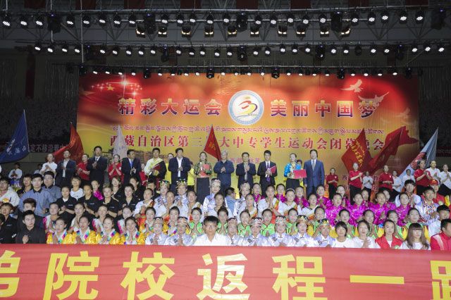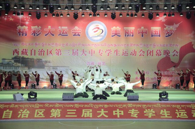 在西藏自治区教育工委、教育厅及全院师生员工的共同努力下,在林芝地区各相关单位及各代表团的大力支持下,西藏自治区第三届大中专学生运动会在我院胜利闭幕。7月7日晚,以“精彩大运会 美丽中国梦”为主题的西藏自治区第三届大中专学生运动会颁奖典 礼暨闭幕晚会在我院文体馆隆重举行。