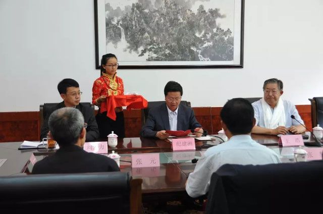 纪建洲为王浩院士敬献哈达并颁发聘书