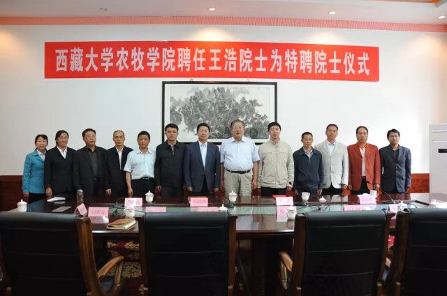 仪式上,郭永刚简要介绍了王浩院士的主要学术成就。纪建洲宣读并为王浩院士颁发了聘书。他代表学院党委、行政和全院师生,向欣然接受我院聘请担任特聘院士的王浩院士,表示衷心的感谢并致以崇高的敬意。纪建洲指出,聘请王浩院士为我院特聘院士是我院的一件大事、喜事,标志着我院在实行柔性人才政策、引进高端人才方面迈出了新步伐,站在了新起点。在简要介绍学院概况后,纪建洲指出,西藏水资源的人均占有水量和亩均占有水量均居全国首位,水电能源的大力开发,在满足日益增长的能源需求的同时,更对西藏的水资源合理利用与生态环境保护等提出了新的课题。王浩院士的加入与支持,一定能以新的视野、新的观念,为我院发展注入新的活力,为我院师资队伍增加新的力量,促进我院师资队伍建设和学科建设,争取重大科研项目,实现“人才共享、资源共享、信息共享、成果共享”;一定能推进西藏水文水资源事业,为西藏水资源合理利用与开发、生态环境保护注入新的理念,促进西藏水利事业蓬勃发展,造福西藏、造福全国。