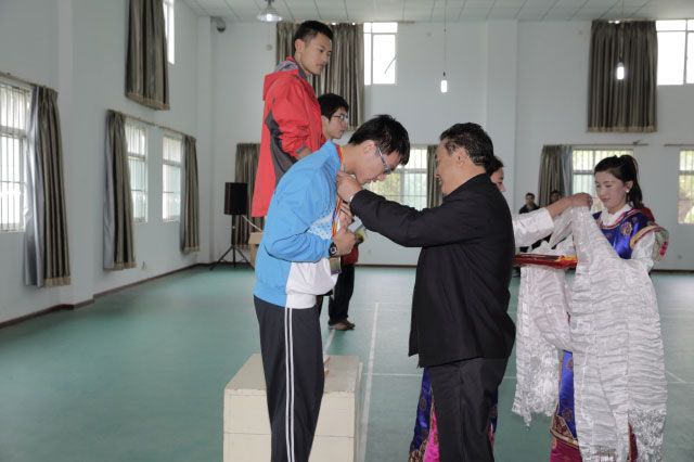 7月1日上午,全区第三届大中专学生运动会乒乓球赛颁奖仪式在文体馆乒乓球室举行。大运会组委会及学院领导纪建洲、次旦平措、周学雷、扎西卓玛,参加乒乓球赛的各代表团团长出席开幕式并为获奖运动员颁奖。