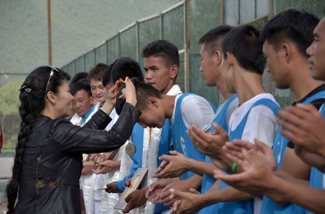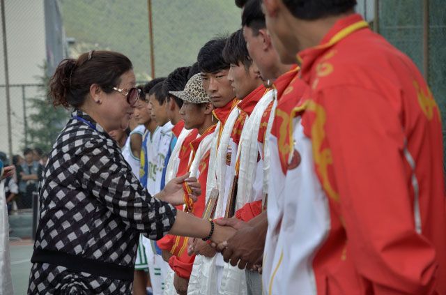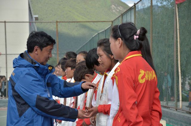 西藏民族学院副院长扎西卓玛为男子甲组前三名颁奖