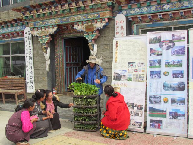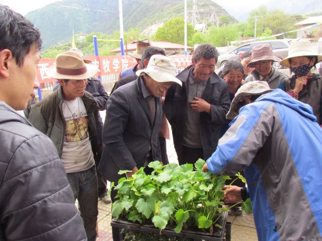 活动中,我院专家团向广大农牧民群众详细讲解了西红柿、丝瓜、土豆、玉米等常见蔬菜瓜果的种子选育、秧苗种植及幼苗病虫害防治技术,家禽家畜的常见病防治、日常看护管理技术,发放了《藏猪饲养技术》、《设施蔬菜栽培技术》等宣传资料,开展了互动交流并一一解答群众提出的各类技术问题。随后,我院专家走进田间大棚,针对农作物及蔬菜生长状况,实地讲解了常见各类作物种植技巧,并对作物病症进行了现场诊治。最后,我院专家团还向前来听取宣讲的120余名村民赠送了培育成功的作物种苗和天达2116生物制剂肥料(蔬菜专用型)。