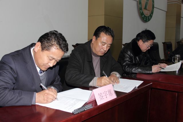 大会最后,纪建洲和次旦平措代表学院党委、行政与各相关单位续签了2014年毕业生就业工作目标责任书、2014年社会管理综合治理目标管理责任书和2014年消防安全责任书。