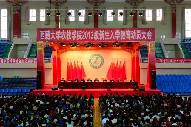 9月4日上午,我院在文体馆隆重召开2013级新生入学教育动员大会。院党委副书记、院长次旦平措出席大会并讲话。学院学工、招就、组织(人事)等部门负责同志以及各二级学院分管学生工作领导、2013级新生共1500余人参加大会。