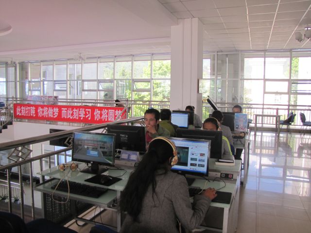 ——以馆藏资源为优势,强化智育教育。图书馆按照“让读者有书看、让书有读者看”的要求,以促进学生全面发展为目标,以学科建设为重点,统筹各种资源不同种类、介质和媒体的协调发展,注重民族特色、社会主义文化大发展大繁荣和社会主义核心价值体系方面的资源建设,形成了以农、理、工、文、管文献为主,多学科、多介质、多媒体相结合的藏书体系。目前,拥有纸本藏书39万余册,电子图书97万多种,纸本和电子期刊(报纸)12000多种。使用“百链”统一检索平台、“读秀”学术搜索引擎,拥有同方学术期刊及博硕论文全文数据库、“超星”电子图书和学术视频、“博看”在线期刊、“银符”模拟考试题库、中国大学生就业知识服务平台、国家科技图书文献中心、自办视听资源等十七个文献数据库(含试用数据库),本地存贮空间达80 TB。
